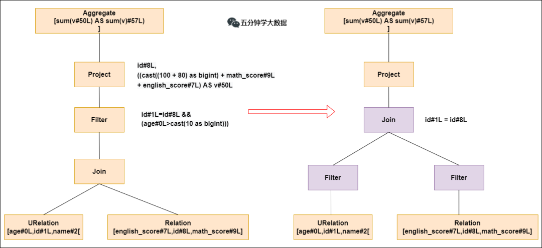 谓词下推就是将过滤操作下推到join之前进行,之后再进行join的时候,数据量将会得到显著的减少,join耗时必然降低。
