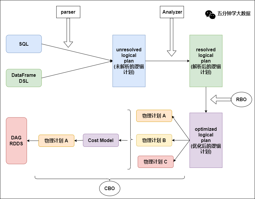 以上2、3、4步骤合起来,就是Catalyst优化器!