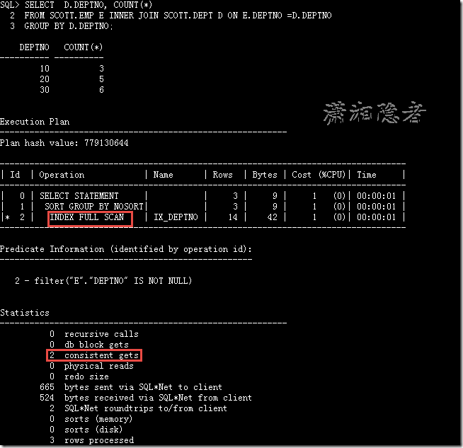 2 - filter("E"."DEPTNO" IS NOT NULL)