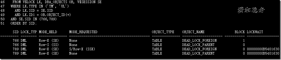 我们先来看看一个简单的例子,看看当外键缺失索引时,子表是否进行全表扫描,如下所示,表EMP与DEPT存在主外键关系: