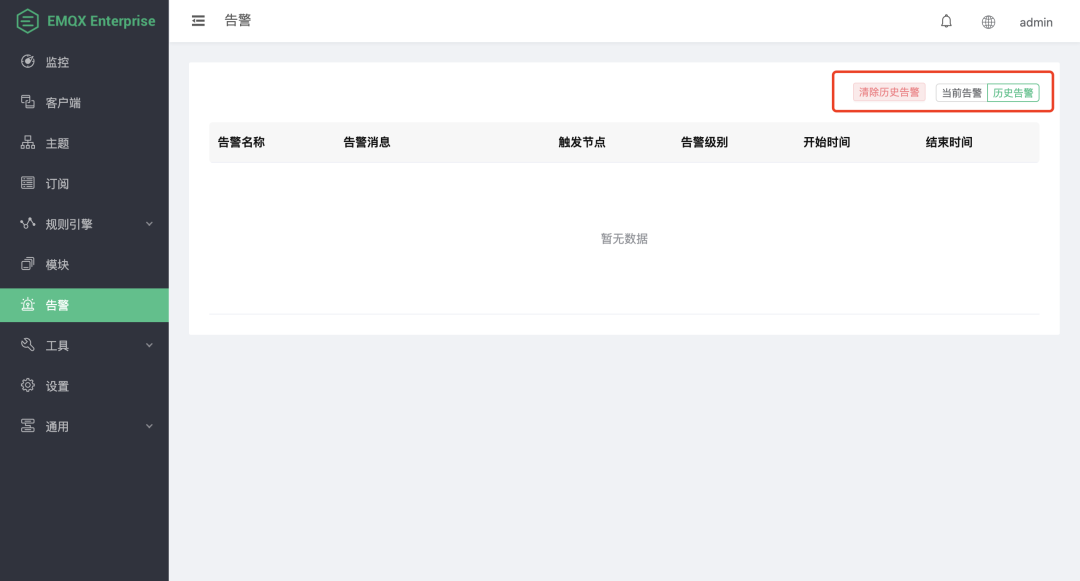 此前 EMQX 已经支持历史告警清除 REST API,本次发布在 Dashbaord 实现了告警清除能力。