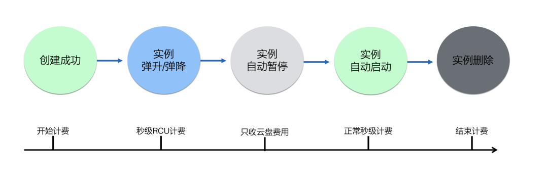 正常运行的实例,计费系统会记录实例秒级RCU资源量变化,推送精确计费;