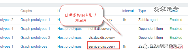 在自动发现规则(Discovery rules)里面你会看到此项监控,默认为启用。