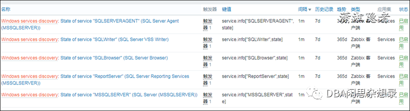 如果此规则被禁用,那么启用这个监控项后,Zabbix会自动(执行操作有时间间隔,你也可以手工执行一次)将Windows自动启动的服务找出,生成相关触发器。
