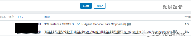手工测试验证,关掉SQL Agent服务后,Zabbix就会告警,截图如下所示: