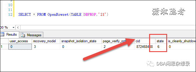 因为当前数据库版本为标准版,所以stated的值来自OpenRowset(TABLE DBPROP, (case when serverproperty('EngineEdition') = 5 then DB_ID() else d.id end)) p