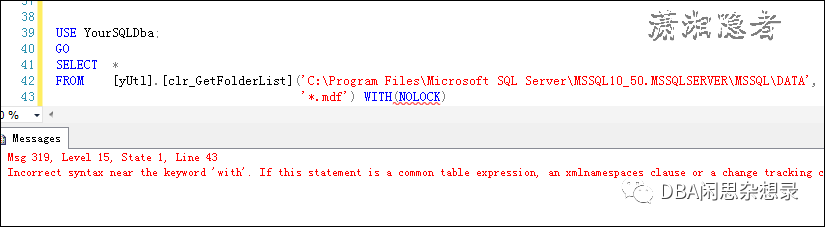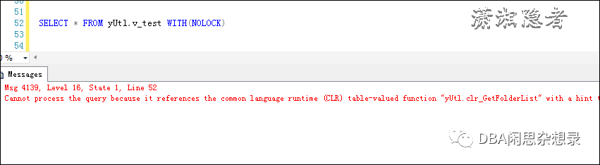 但是有点奇怪的是官方资料上并没有详细说明CLR表值函数不能使用WITH(NLOCK)等表提示,不清楚是文档不够完善,还是忽略了这些细节。个人倒是第一次遇到这种错误,特此记录一下这个问题。