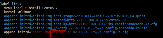 17. 修改PXE引导映像,指定为ks自动安装树文件