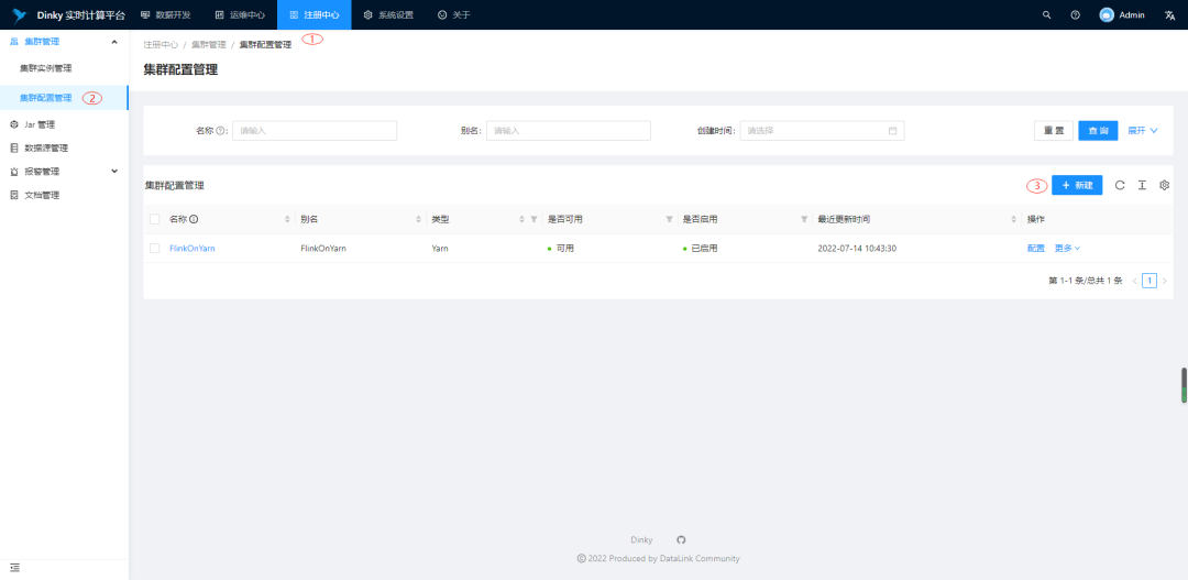 进入注册中心 -> 集群管理 -> 集群配置管理 -> 新建