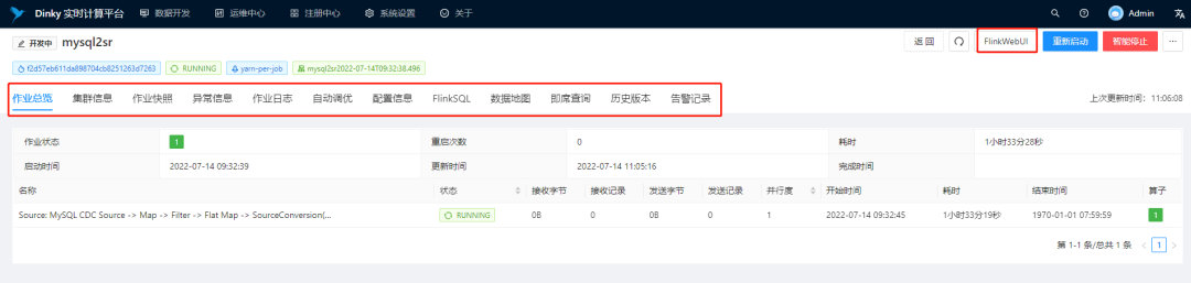 进入 FlinkWebUI 查看查看具体构造及日志信息