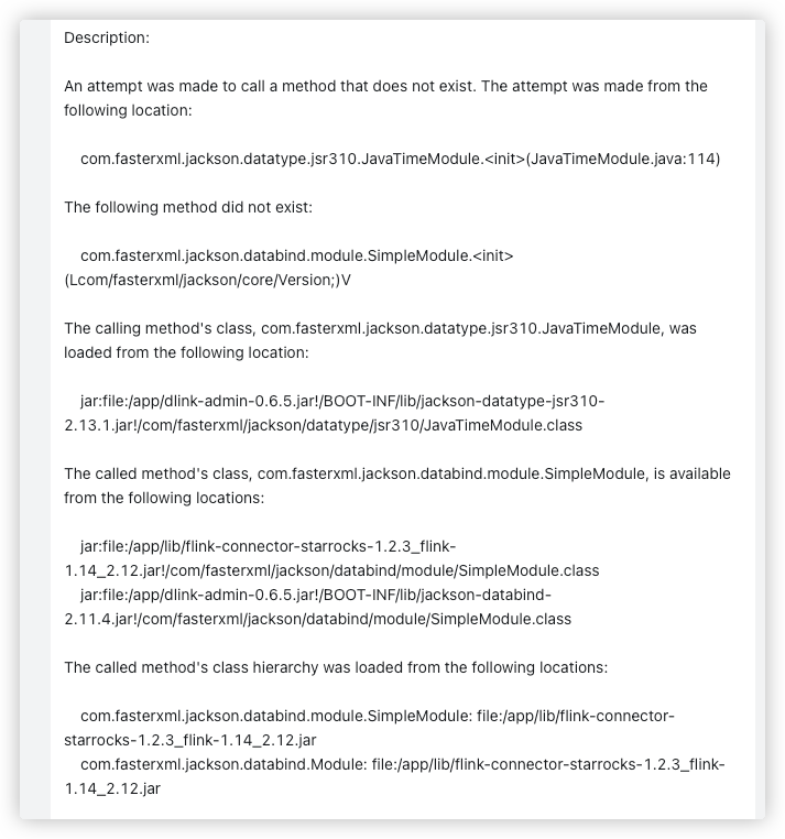 上方报错主要是因为依赖冲突而导致启动报错, 对应的删除starrocks com下fasterxml 即可。