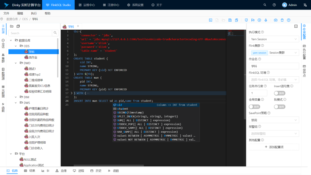 可视化交互式 FlinkSQL 和 SQL 的数据开发平台:自动提示补全、语法高亮、调试执行、语法校验、语句美化、全局变量等