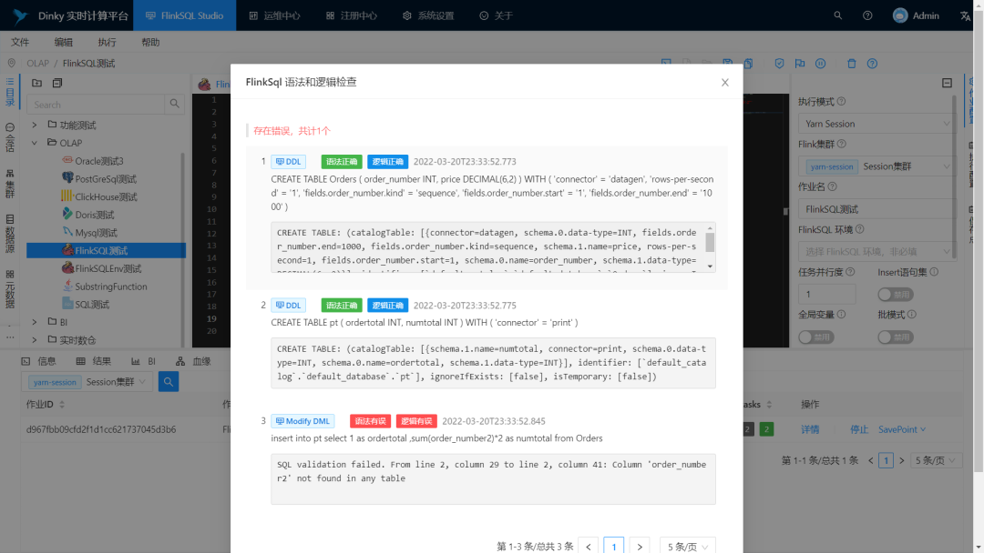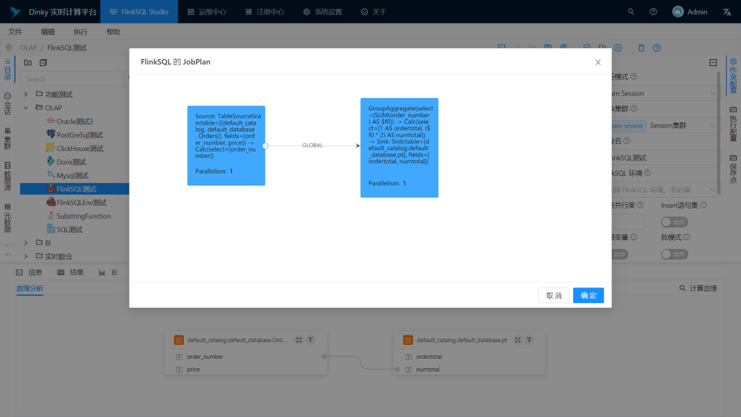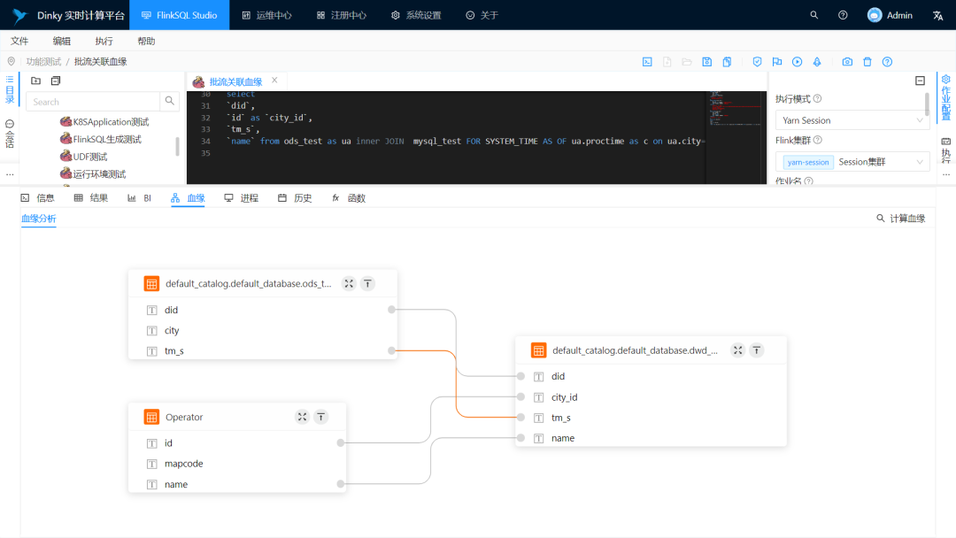 支持语法逻辑检查、作业执行计划、字段级血缘分析等