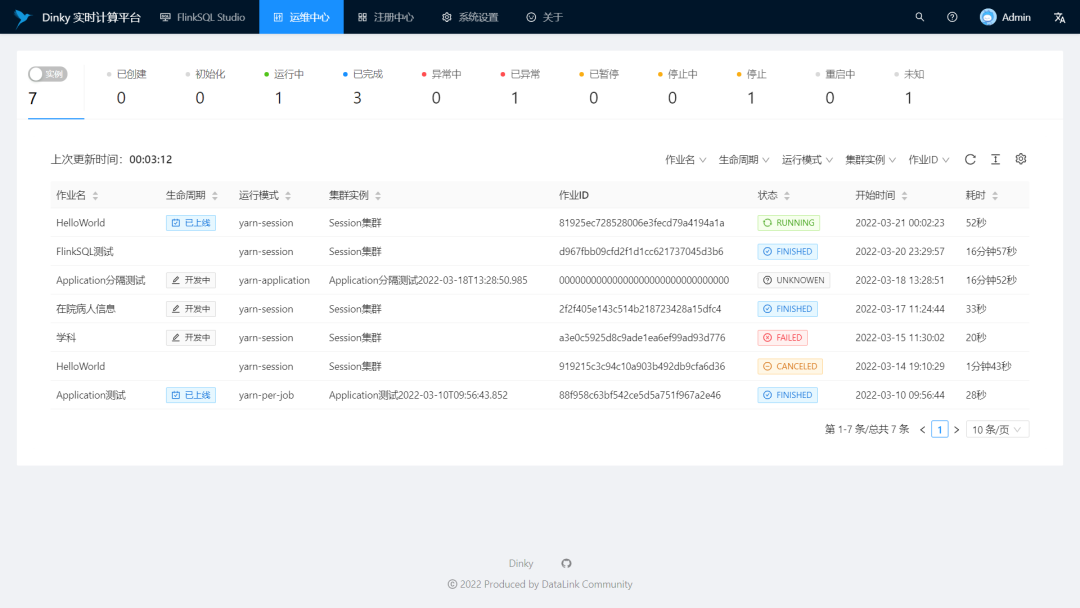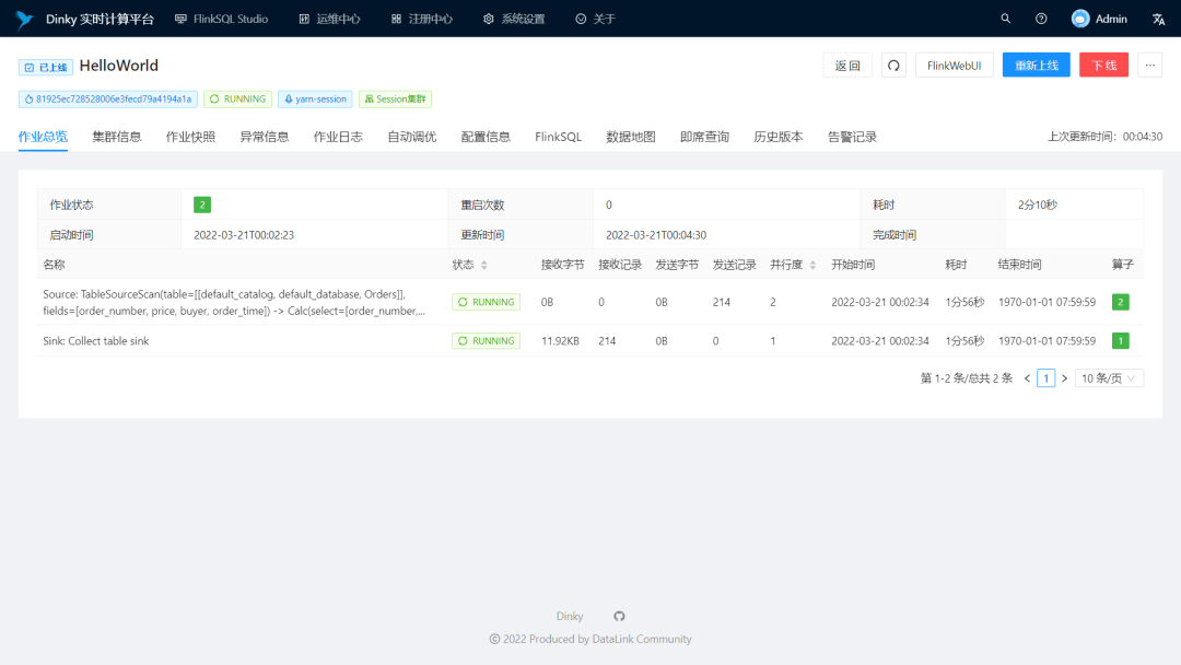 Dinky 作为基于 flink 二次开发的一款交互式开发平台,提供 web 方式的 FlinkSQL 开发编辑器、自动补全,任务启停、数据地图、运行日志信息查看、支持 yarn 和 k8s 集群部署等功能。部署方面实现轻量化,开箱即用,降低与原始数据集群耦合度,便于适配原有数据集群版本;开发方面,降低开发人员使用 flink 难度及运维复杂度。