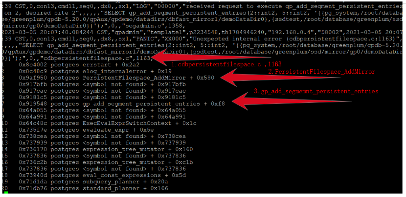 "cdbpersistentfilespace.c",1163行代码抛异常。 PersistentFilespace_AddMirror 被调用 gp_add_segment_persistent_entries被调用