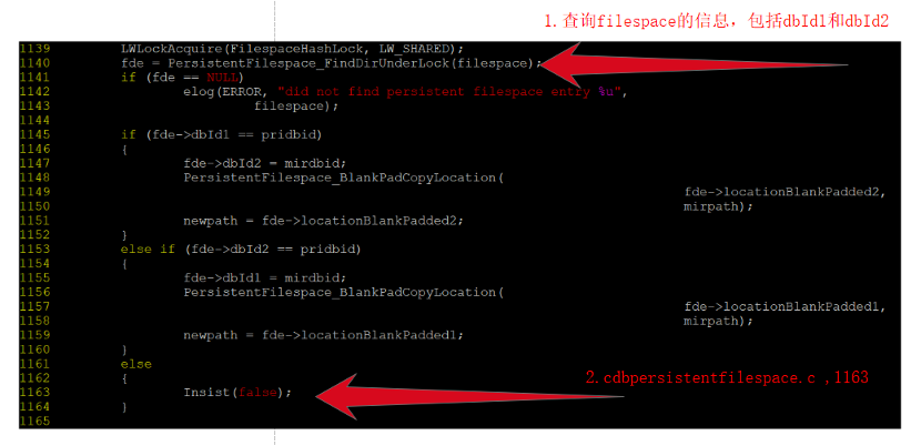 filespace对应的dbId1和dbId2 都不等于当前的pridbid,因而抛异常。