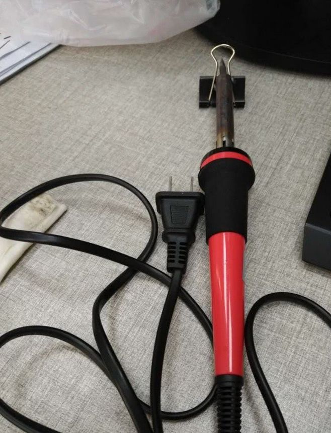 开始点了几下,发现没用,点不上,要焊锡丝才行,但是我的已经用完啦。