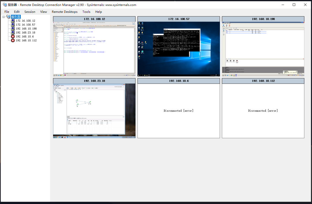 支持保存账号密码,并导出配置文件,方便恢复。可以批量连接远程桌面,也可以单连。支持全屏和多格展示,方便监控远程主机实时画面。