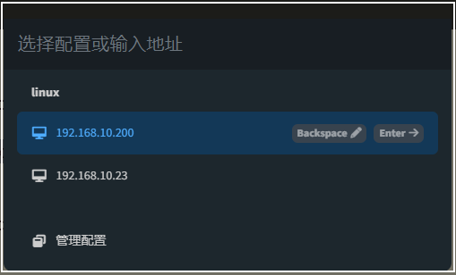 保存过的会话连接信息会出现在设置界面,后续可以直接通过弹出框新建连接: