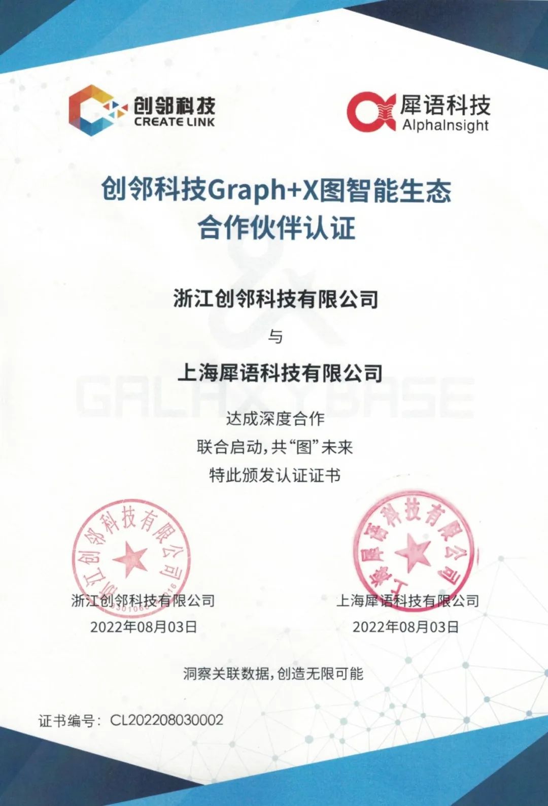 8月3日,上海犀语科技有限公司(以下简称“犀语科技”)与浙江创邻科技有限公司(以下简称”创邻科技“)正式签署战略合作协议,正式加入创邻科技“Graph+X”图智能生态合作体系,开启合作计划。