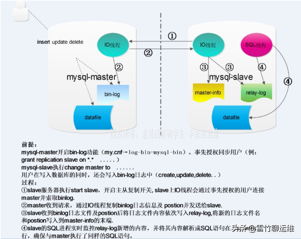 mysql主从复制是一个异步复制过程(总体感觉是实时同步的),mysql主从复制整个过程是由三个线程完成。slave端有两个线程(SQL线程和IO线程),Master端有另一个(IO线程)。