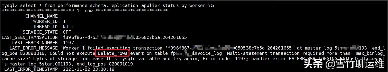 mysql主从是常用的高可用架构之一,也是使用最广泛的的系统架构。在生产环境中mysql主从复制有时会出现复制错误问题。MySQL主从复制中的问题(Coordinator stopped beacause there were errors in the workers......)