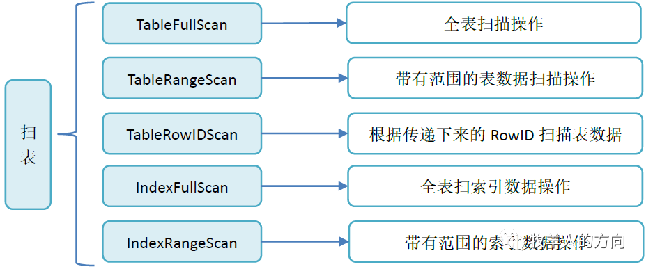 IndexReader:将TiKV上底层扫表算子IndexFullScan或IndexRangeScan得到的数据进行汇总。
