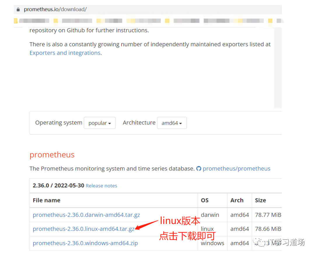 地址:https://prometheus.io/download/