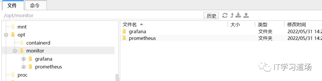 我在 linux服务器的/opt下新建了monitor文件夹,防止一些监控的工具,在monitor新建了grafana和prometheus两个文件夹