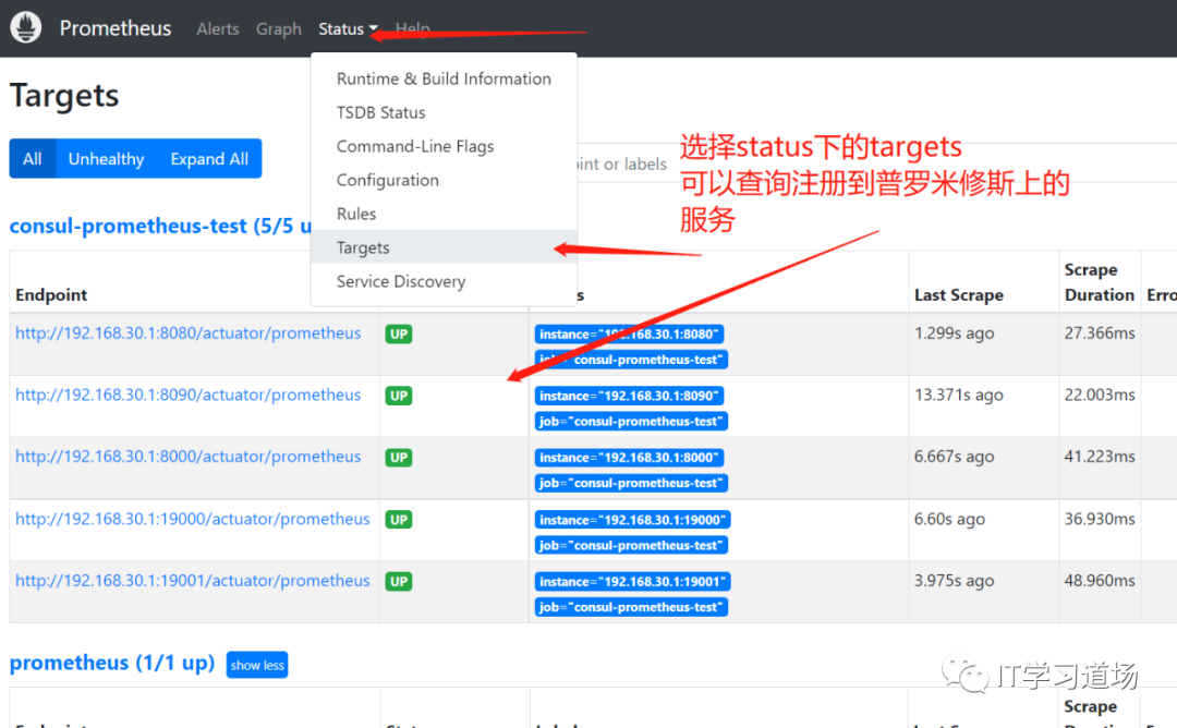 这样就注册到prometheus,到此成功,点击任意个服务就会有相信信息