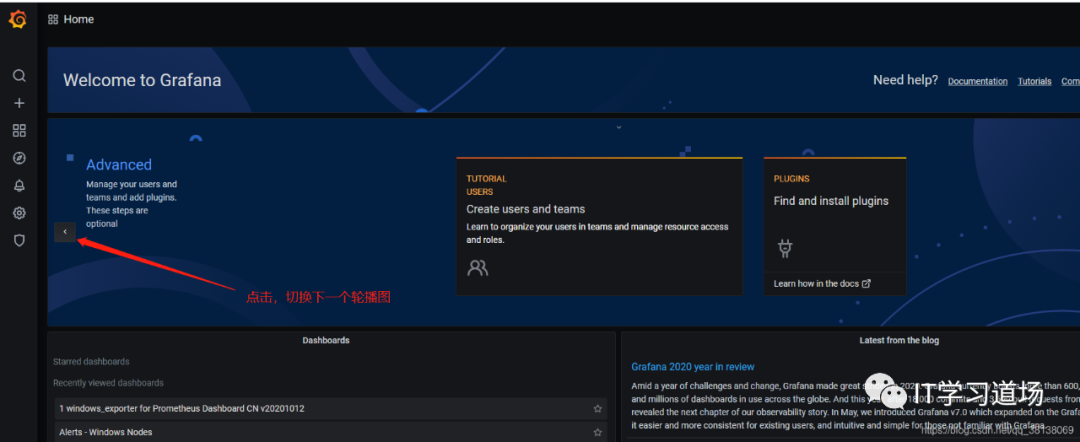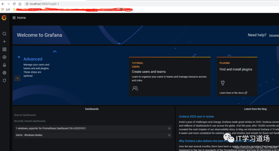 浏览器访问 http://localhost:3000/就可以,用户名/密码 admin/admin,成功页面