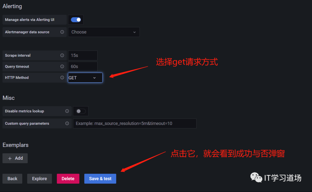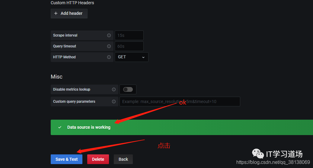 这里prometheus数据源配置完成,也就是grafana可以访问到刚刚安装的prometheus服务了