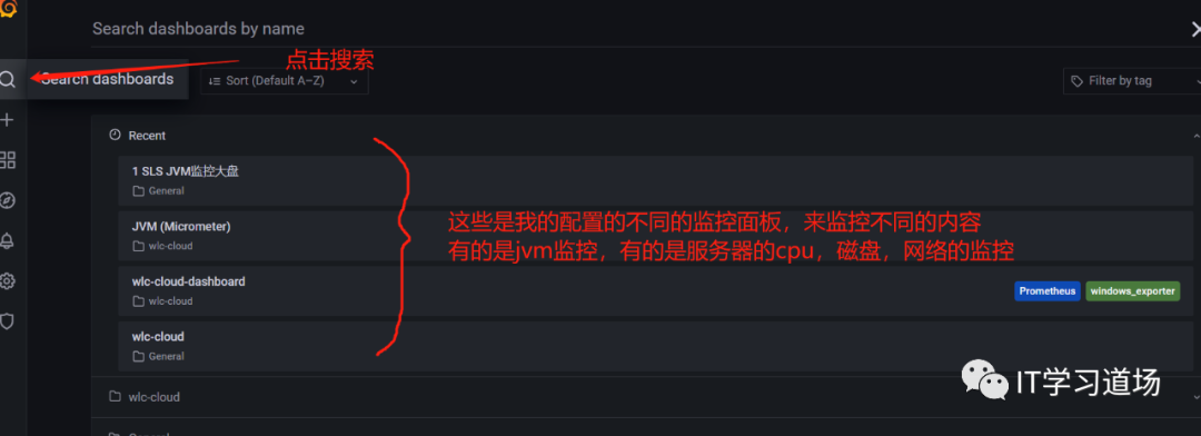 点击搜索,选择不同的面板,来查看不同的监控需求