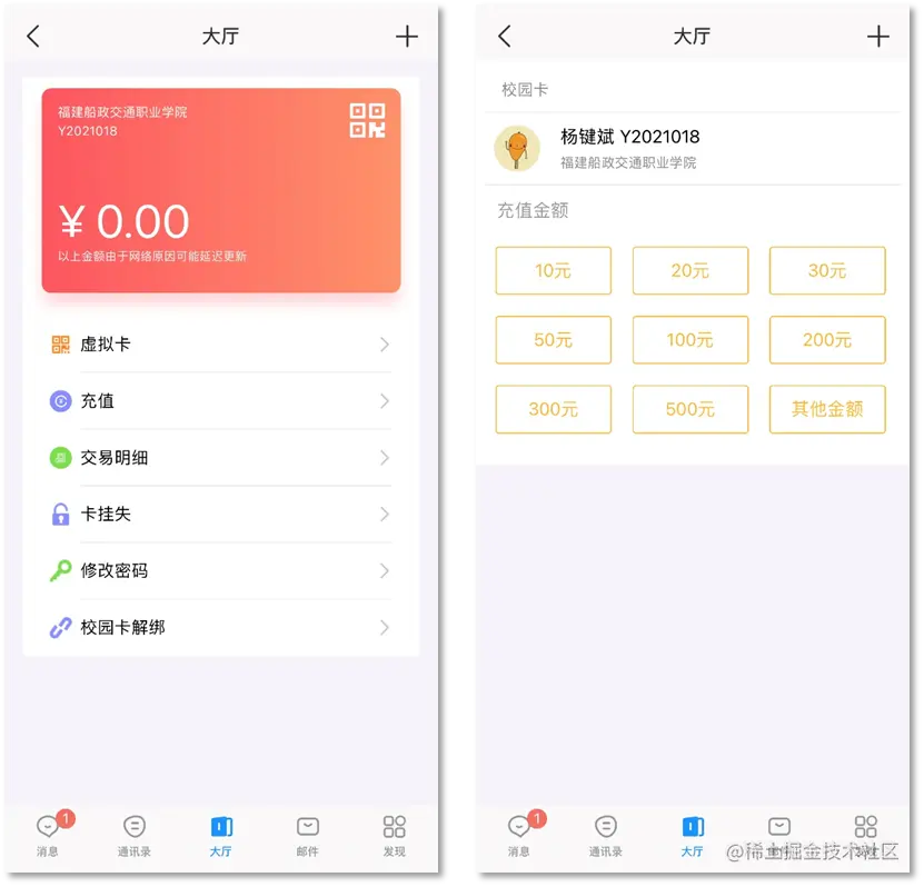 新生入学后,只需通过WeLink即可完成信息采集、人像注册、校园卡充值等服务事项办理,简化生活服务流程,减少事务办理时间,快速融入校园生活,心无旁骛高效学习。很多学生都有实体校园卡易丢失、补办的坎坷经历,线下充值排队也很浪费时间,现在,打开WeLink使用电子校园卡,出示二维码即可消费,在线充值,无需等待。