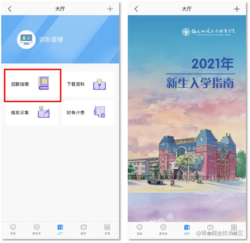 由于9月福建多地出现疫情,省内众多学校推迟了开学日期,10月15日,福建船政交通职业学院终于迎来2021级新生。为营造良好的迎新氛围,福建船政交通职业学院基于华为云WeLink平台推出信息化、个性化、一站式智慧迎新服务。WeLink平台智慧迎新服务,将迎新相关的信息采集、财务缴费等服务改为线上进行,有效地避免了人群聚集,大幅度提高了工作效率,保障迎新工作安全有序进行,学校在从严落实疫情防控各项举措的同时,以细致周到的用心服务,让家长放心、学生暖心,一天之内,7000+位福建船政学子通过“WeLink智慧迎新”方便快捷地完成了入学报到。