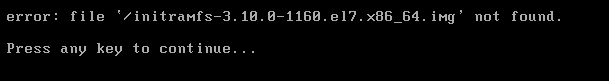出现该故障时,可以进入救援模式,重建initramfs文件。