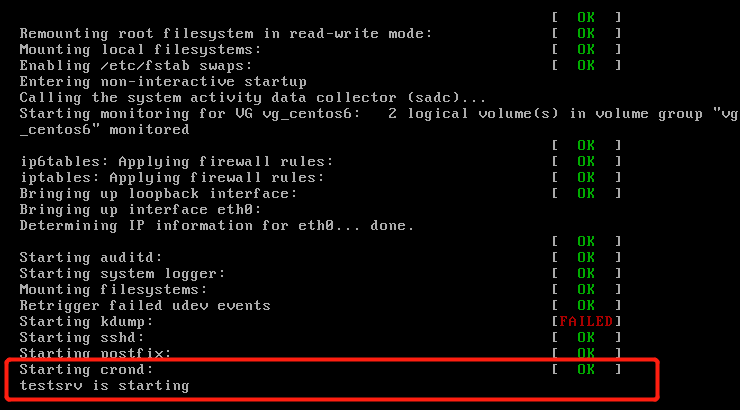 出现该类故障时,根据启动界面失败的服务名,再重启进入单用户模式,修改服务脚本,重新引导系统。