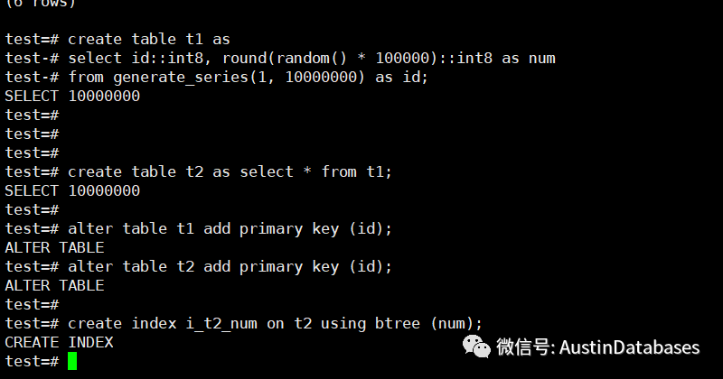创建两张表,同时针对同样的两张表,一个添加查询中的相关索引,一个不添加相关的索引。