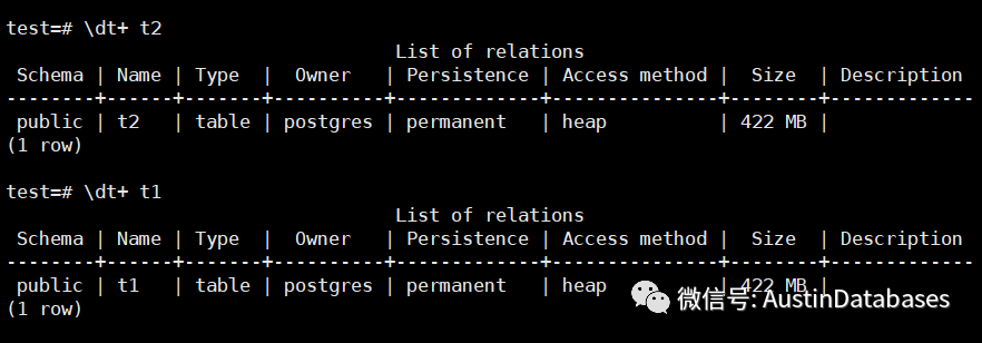 我们将两个表的表的大小进行展示,我们稍微的改变一下,在t1 中建立另外的索引,然后我们在看我们的查询执行的计划中的buffer 的情况。 其中buffers 变为了18