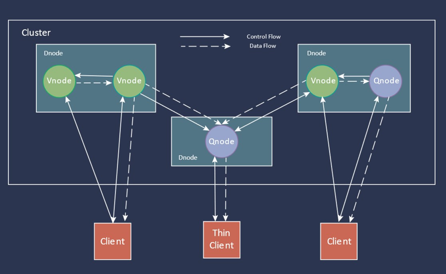 打造云原生时序数据库,第一个要素就是必须是分布式架构。其实 TDengine 以前也是分布式架构,但为了实现云原生的种种特性,我们在此架构基础上引入了一个新的节点——计算节点 Qnode。那通过云原生如何解决可扩展性问题?还是通过分片分区来解决,数据切分的方法我们没有做太多改动,TDengine 一开始就是这么做的,在时间轴上以天或周为单位对数据进行切分,同时将定量设备的数据分配给每个区(Vnode)进行处理。跟 2.x 相比,3.0 最大的不同就是元数据的管理也变成了完全分布式的。这也是我在此前版本中吸取了一个教训而做出的改变,最开始我没想到元数据的管理如此之难。有一次我们和涂鸦聊合作,他们要测五千万个设备的数据,TDengine 2.0 在测试中就出现了高基数问题。在 2.x 的设计中,我们的元数据统一存放在 mnode 中,这在此次测试中就成为了一个瓶颈——在进行聚合操作时,光是把五千万个设备中的标签数据拉出来就需要很长时间,聚合速度可想而知。也因此,高基数成为了我们在 3.0 版本中解决的首要问题。现在的 TDengine 管理节点不再存储每个设备或每张表的元数据了,而是把这些元数据还有时序数据完全存储在 vnode 里,之后会用 B+ 树、一致性哈希来处理。这样一来,我们在插入一个数据到任何一个片或者一个区时都不再需要经过任何中间节点,彻底解决了高基数的问题。经过测试,TDengine 3.0 完全能够支持 10 亿个设备、100 台服务器节点,同时整个启动时间也很快,不到一分钟整个集群就能启动。尽管此前的 2.6 也能支持五千万的设备数,但启动时间就大概要三四十分钟,设备数量多的时候不太给力。中国智能电表至少要有十亿台,给十亿台电表做聚合操作可以说相当不容易,解决高基数问题是很重要的,TDengine 发展到 3.0 版本才算是真正把这个问题解决了。