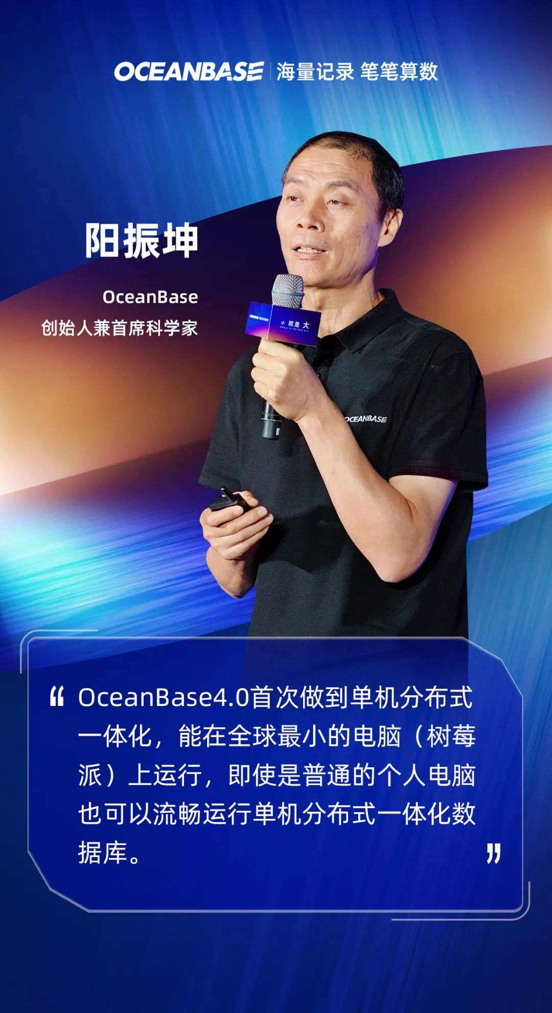 在发布会上阳振坤从 OceanBase 的 0.1 版本聊到今天的 4.0 发布,并表达了 12 年技术演进背后的思考。“从 2010 年 OceanBase 的第一个版本开始到今天,已经过去 12 年多的时间,我们开发了好多的版本,可以说每一个版本都是整个 OceanBase 梦想的一次次迭代、一次次升级。” 阳振坤表示。