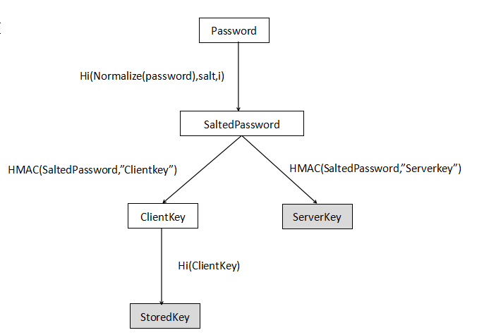 ClientSignature := HMAC(StoredKey, AuthMessage) H(ClientProof XOR ClientSignature ) == StoredKe |
