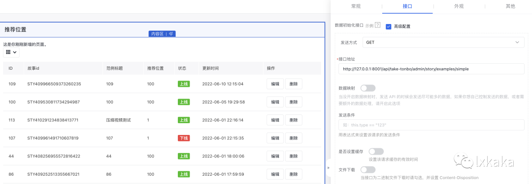 我们至此明白了页面的搭建就是开发上面这样的 json 文件,但是写这样的 json 还是费时费力还不直观。在开始我们也提到很多页面包含的功能都是通用的的,只是不同组件的组合。所以如果有一个工具能让我们直接拖拽各种组件就能生成 json 岂不是很爽。