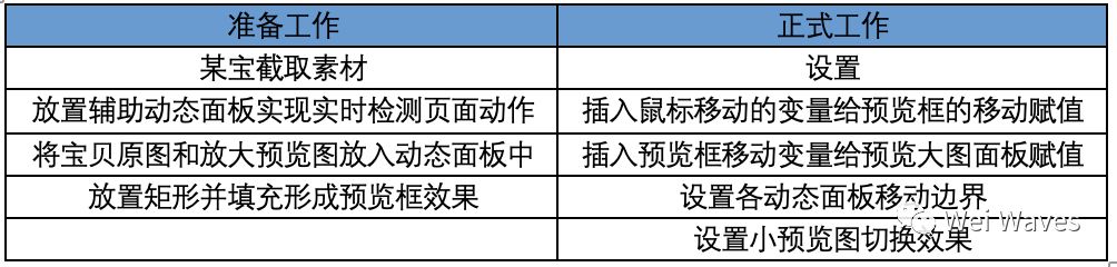 将工作粗略地分为两个部分,准备工作和正式工作,准备工作主要是一些素材准备、静态效果设置,而正式工作则是对已经放置好的动态效果插入复杂的交互效果(决定到需求实现的交互效果)