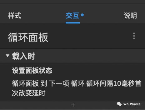 b. 选择动态面板—交互—载入时—设置面板状态—下一项—循环间隔10ms
