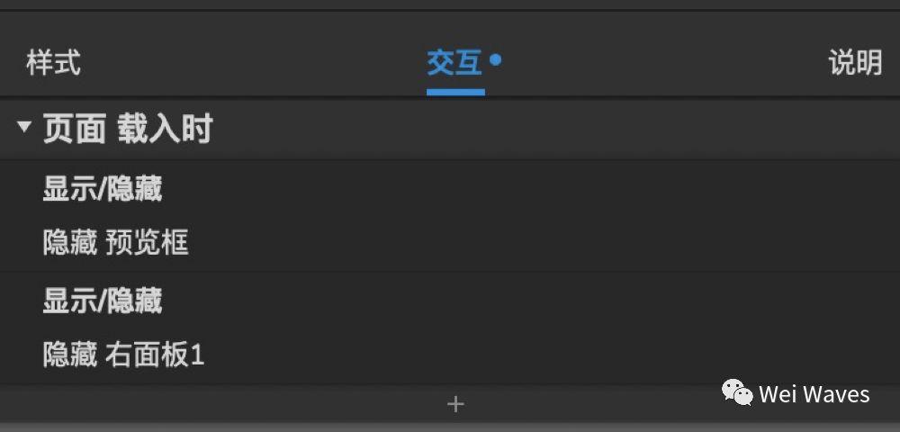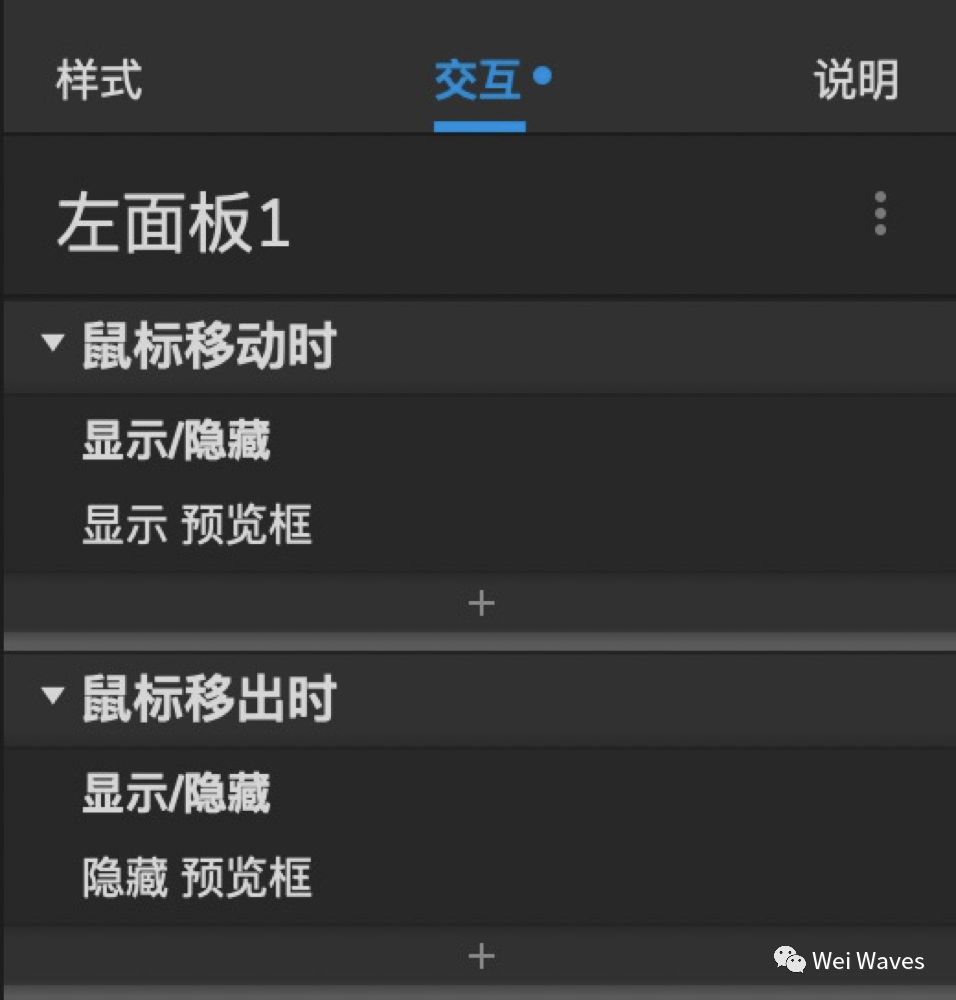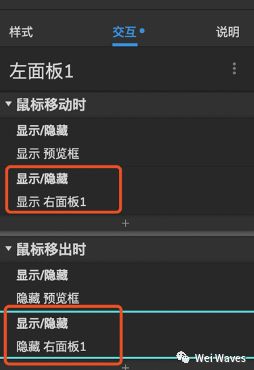 8.选中左面板1—添加显示/隐藏 右面板1的效果