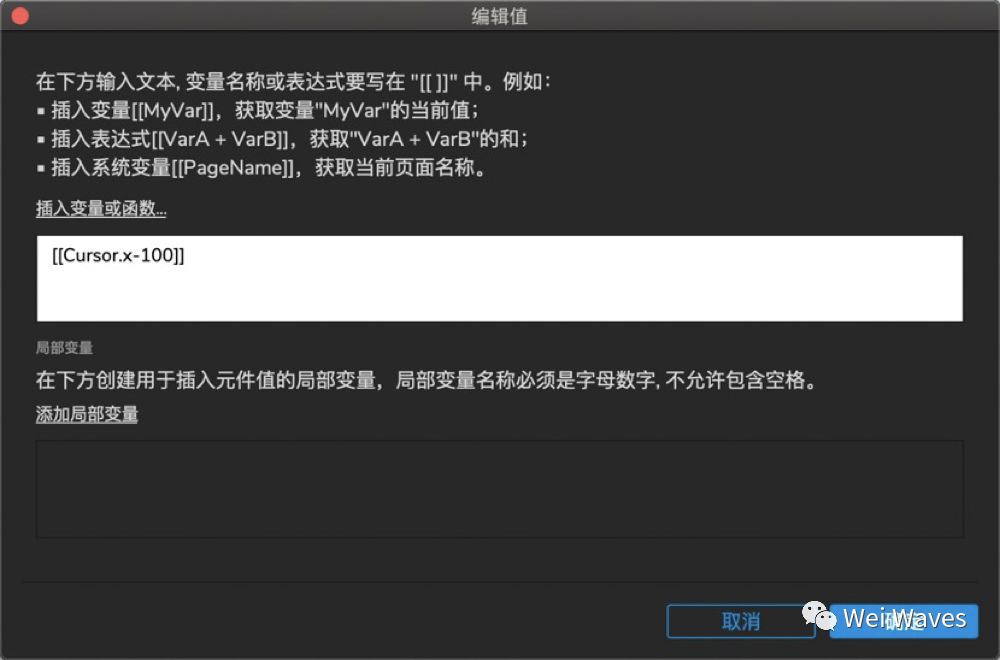 选择辅助动态面板—状态改变时—移动—预览框—x插入局部变量[[Cursor.x-200]]—y插入局部变量[[Cursor.y-200]]