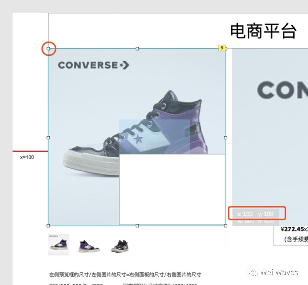预览框的坐标是相对于原商品图来说的,鼠标怎么移动,预览框里面的内容也会怎么移动