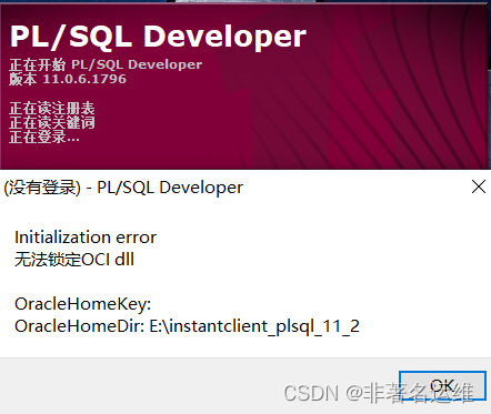 Oracle连接工具PLSQL登录时提示初始化失败,无法锁定OCI.dll错误解决