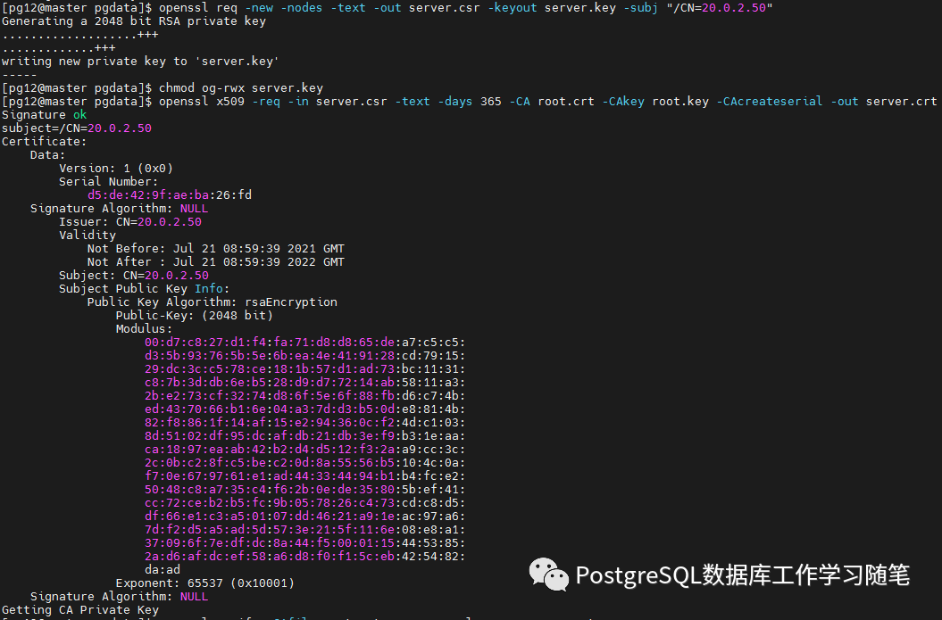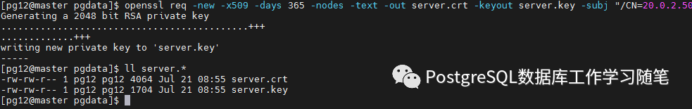 openssl req -new -nodes -text -out server.csr -keyout server.key -subj "/CN=dbhost.yourdomain.com"